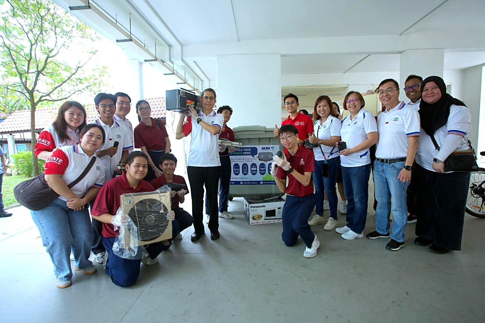As part of our school’s commitment to nurturing environmentally responsible citizens, students from Secondary 3A participated in a Joint E-Waste Collection Drive in the Ubi neighbourhood, organised with ALBA, the Marine Parade–Braddell Heights Town Council, and community volunteers. The event, graced by Associate Professor Muhammad Faishal Ibrahim, promoted sustainable practices and responsible e-waste disposal.
