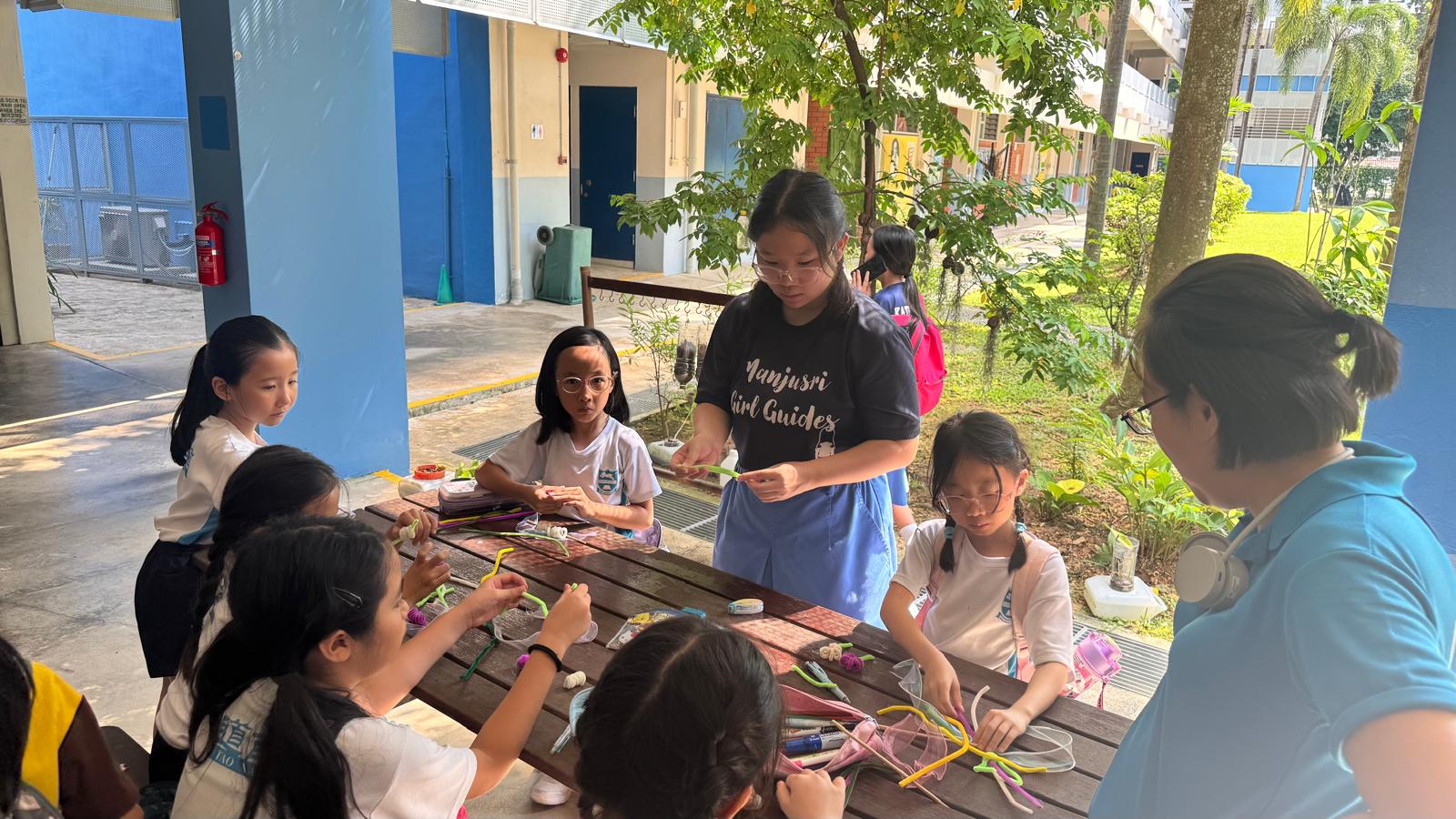 Our Girl Guides programmes at Manjusri has been refined to align with MOE’s 21st Century Skills and Competencies and aims to stretch our Guides to their fullest potential. Under the supervision of the guiders, our Guides plan and execute CCA trainings to fulfil a comprehensive 5-point program which covers developmental aspects such as Personal & Social Development, Home, Outdoor, Community and International. This provides our Guides with necessary experiences that will enrich their learning beyond the classroom and develop our Guides such that they are able to negotiate the challenges and obstacles that they may face in future.